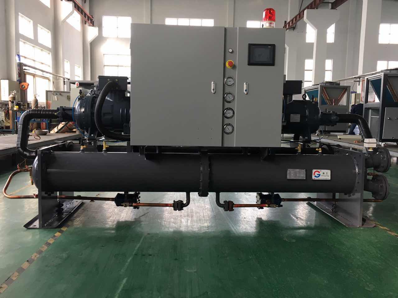 加大模具螺杆冷水机的冷却水量:虽然这个方法简单易行,但是流量可不能随意加大,它主要受到冷却水泵容量的限制的,如果一意孤行过分加大冷却水流量,会直接引起冷却水泵功率消耗急剧上升,必然得不到理想的结果。